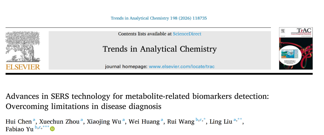 近日,东南大学江苏省重症医学重点实验室陈慧与海南医科大学急救与创伤研究教育部重点实验室于法标团队在国际权威学术期刊《Trends in Analytical Chemistry》(IF=12)发表了题为“Advances in SERS technology for metabolite-related biomarkers detection: Overcoming limitations in disease diagnosis”的综述论文,该论文系统总结了表面增强拉曼散射(SERS)技术在代谢物相关生物标志物检测中的最新技术进展(特别针对疾病诊断领域),针对其如何克服现有检测方法的局限,如灵敏度、选择性、复杂生物基质干扰和临床应用可行性等进行了深入的,并展望了SERS技术与现代生物医学技术的融合前景。