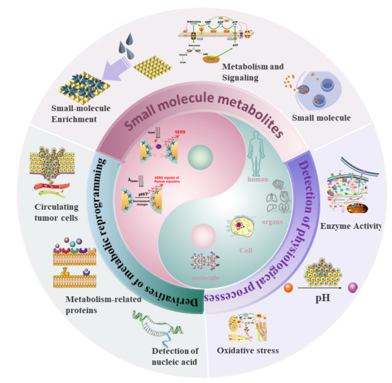 细胞代谢是维持细胞生长、增殖及微环境稳态的核心生物过程,其异常变化贯穿多种疾病的发生与进展,因此代谢物相关生物标志物在疾病早期评估与精准诊断中具有重要价值。然而,传统代谢物检测技术如色谱-质谱和免疫分析普遍存在样本处理复杂、检测周期长、成本高等问题,限制了其在临床快速检测中的应用。针对这一瓶颈,该论文系统综述了表面增强拉曼散射(SERS)技术在代谢物检测领域的最新进展,重点分析了SERS基底与纳米结构设计、信号增强机制及选择性识别策略,并总结了其在复杂生物样本中实现高灵敏检测的关键方法,包括样本富集、界面调控和干扰抑制等。同时,该论文探讨了SERS与微流控平台、数据分析算法等新兴技术的融合趋势,展示了其在快速检测及临床即时检测(POCT)中的应用潜力,并客观指出当前仍面临的基底重现性、检测标准化及临床验证不足等挑战。该论文全面呈现了SERS技术在代谢物相关生物标志物检测中的发展现状,为其在疾病诊断与精准医学中的进一步应用提供了重要参考。